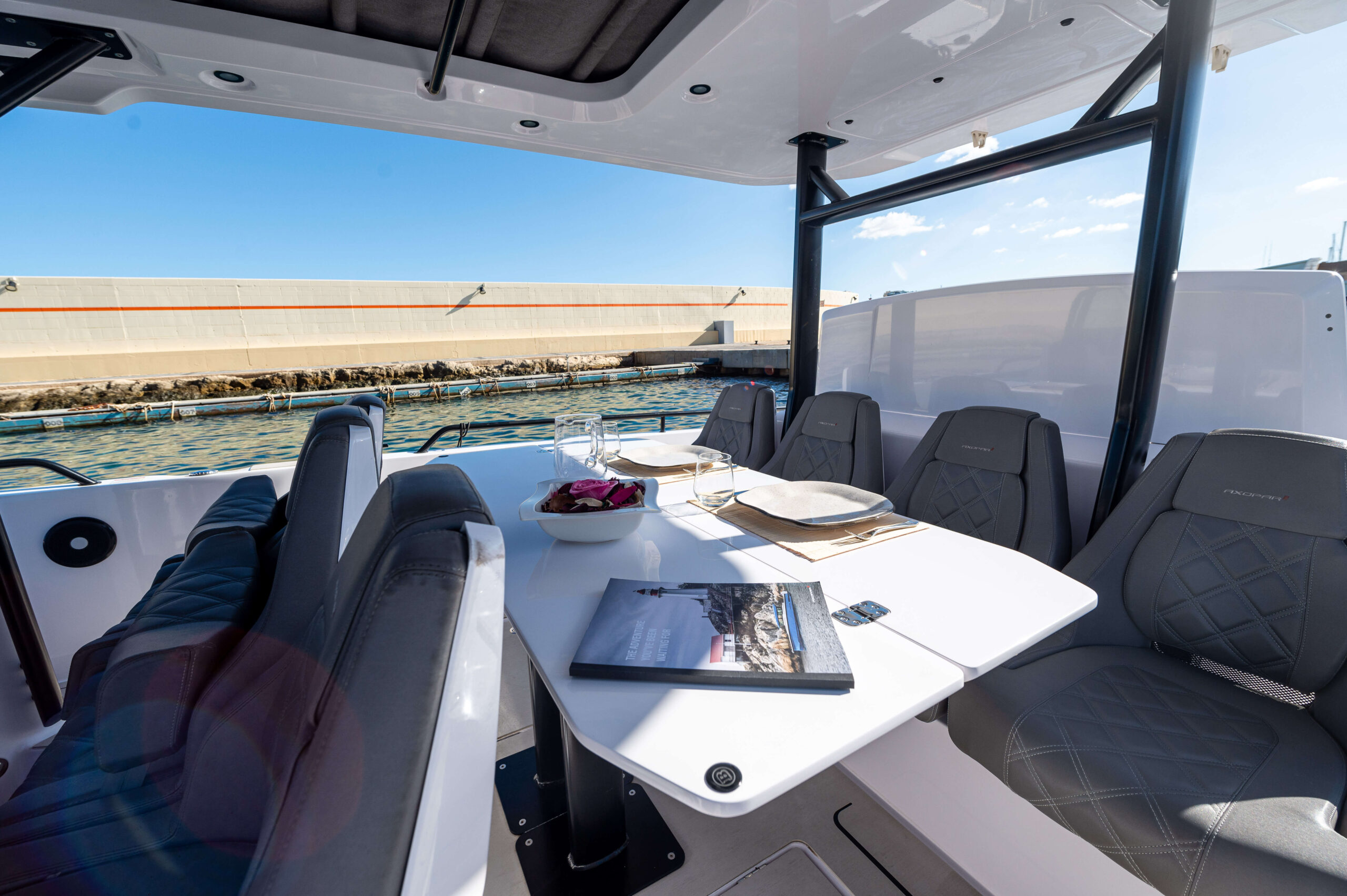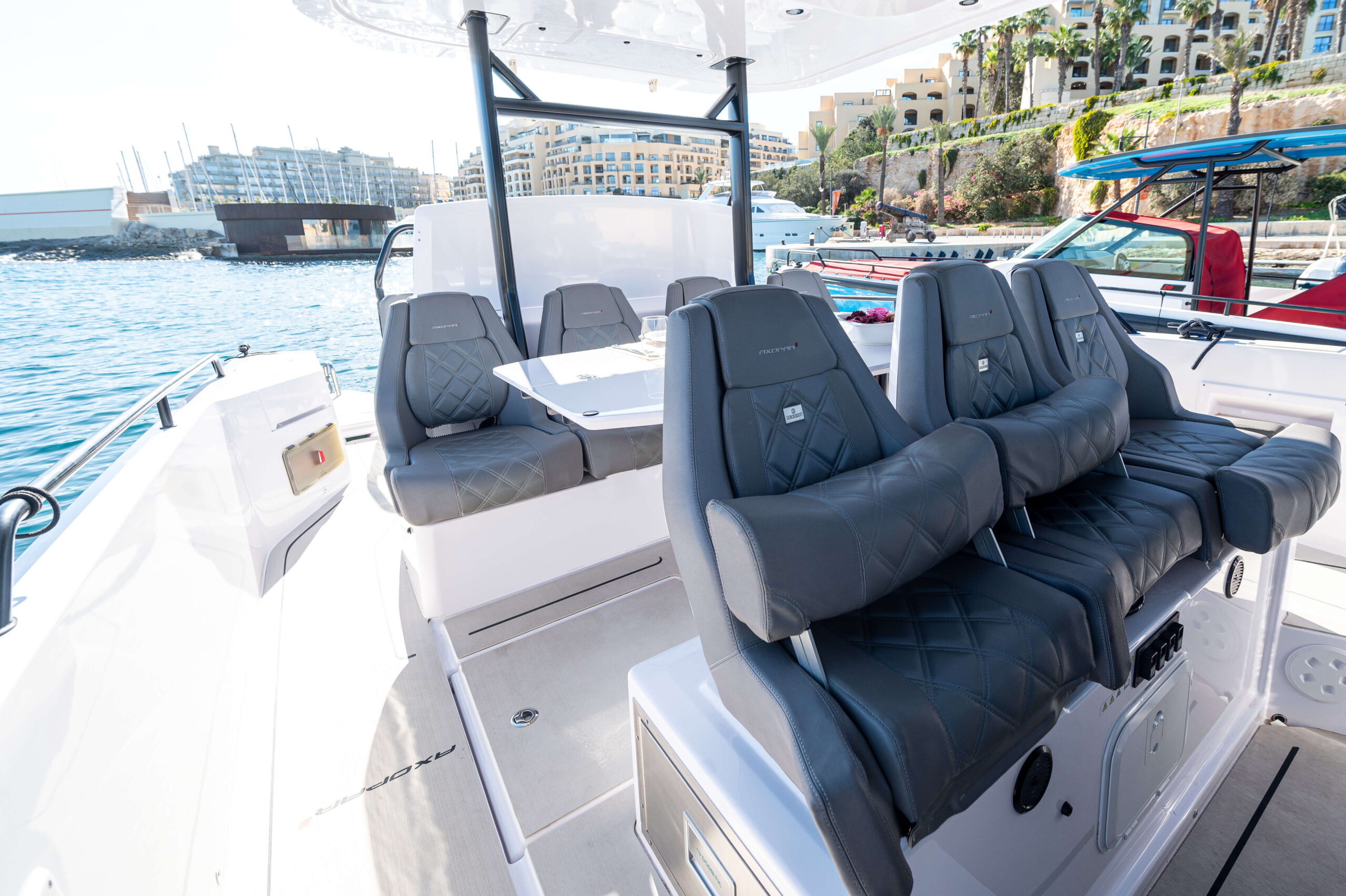 Aft deck folding seats, BRABUS Line black, Silvertex Sterling